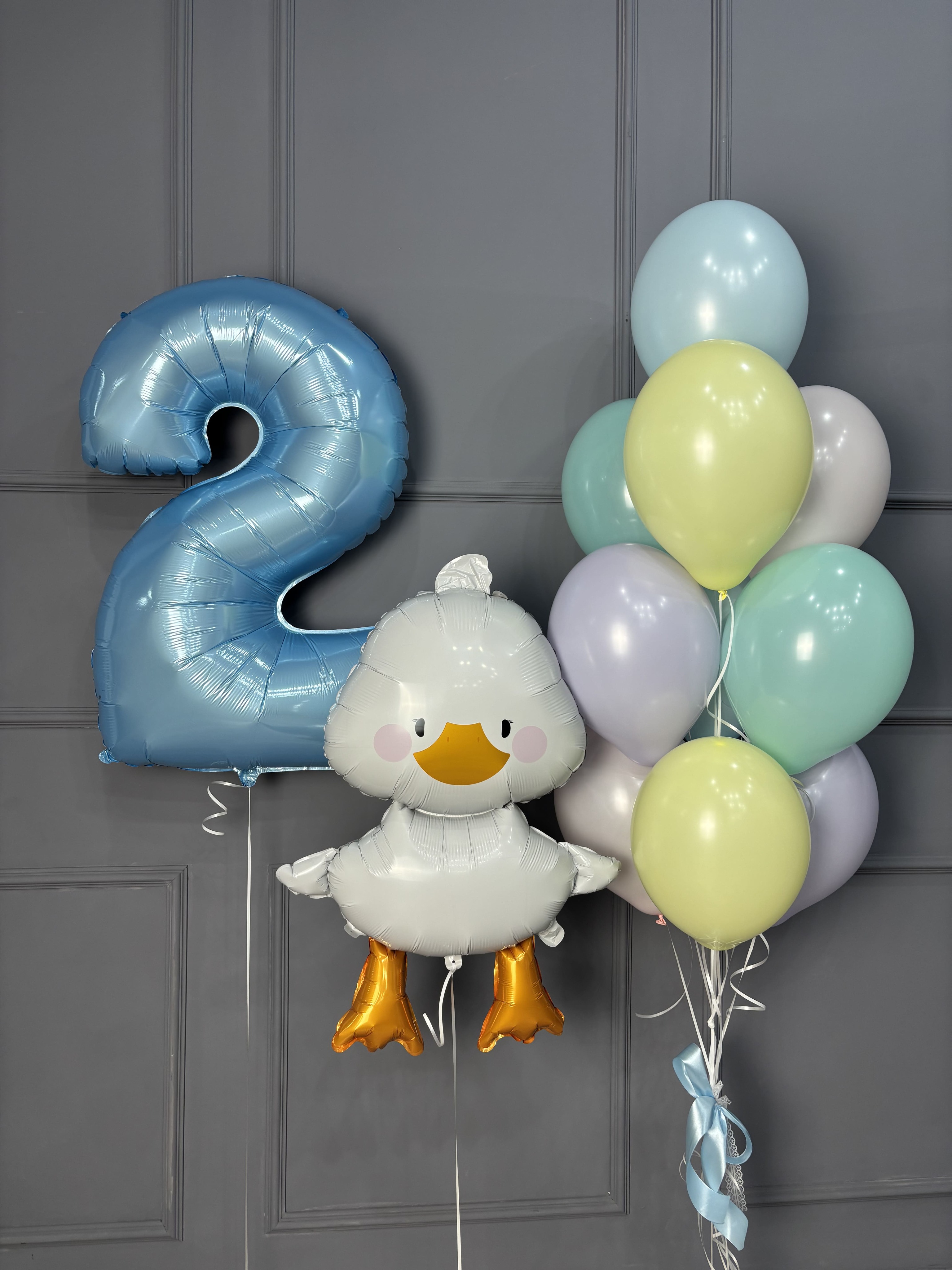 Нежный и трогательный набор воздушных шаров для празднования 2-го дня рождения малыша 👶💙Композиция выполнена в спокойных пастельных тонах и идеально подойдёт для фотосессии, домашнего праздника или украшения зала.