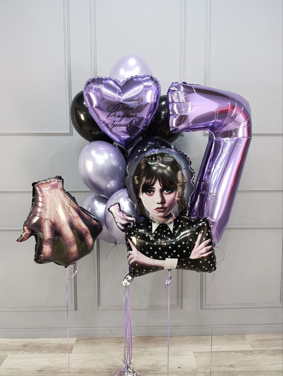 Этот набор включает в себя фигуру в виде очаровательной девочки из популярного сериала "Уэнздей". Добавьте магии и веселья своему празднику с этой уникальной фигурой, которая станет ярким акцентом вашего украшения.